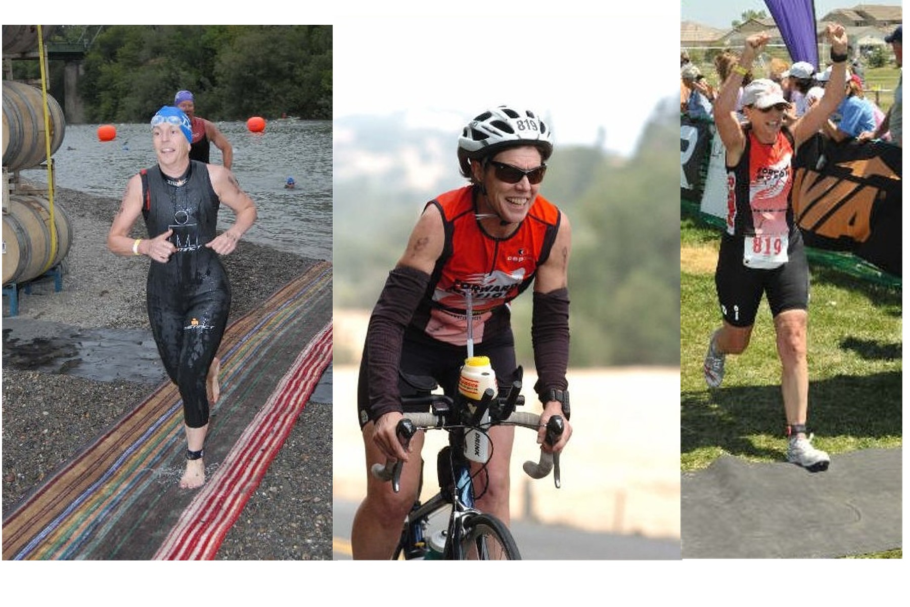 This year I raced less but I raced better finishing my first 70.3 (Vineman) in 6:55 with a little help from my friend Jenny Moore who watched the time and made sure we came in under 7 hours. I had way too much fun at that race (see last set of pics). I also did Tri for Real again with the goal of coming in under 2 hours. Mission accomplished – with a smile on my face.