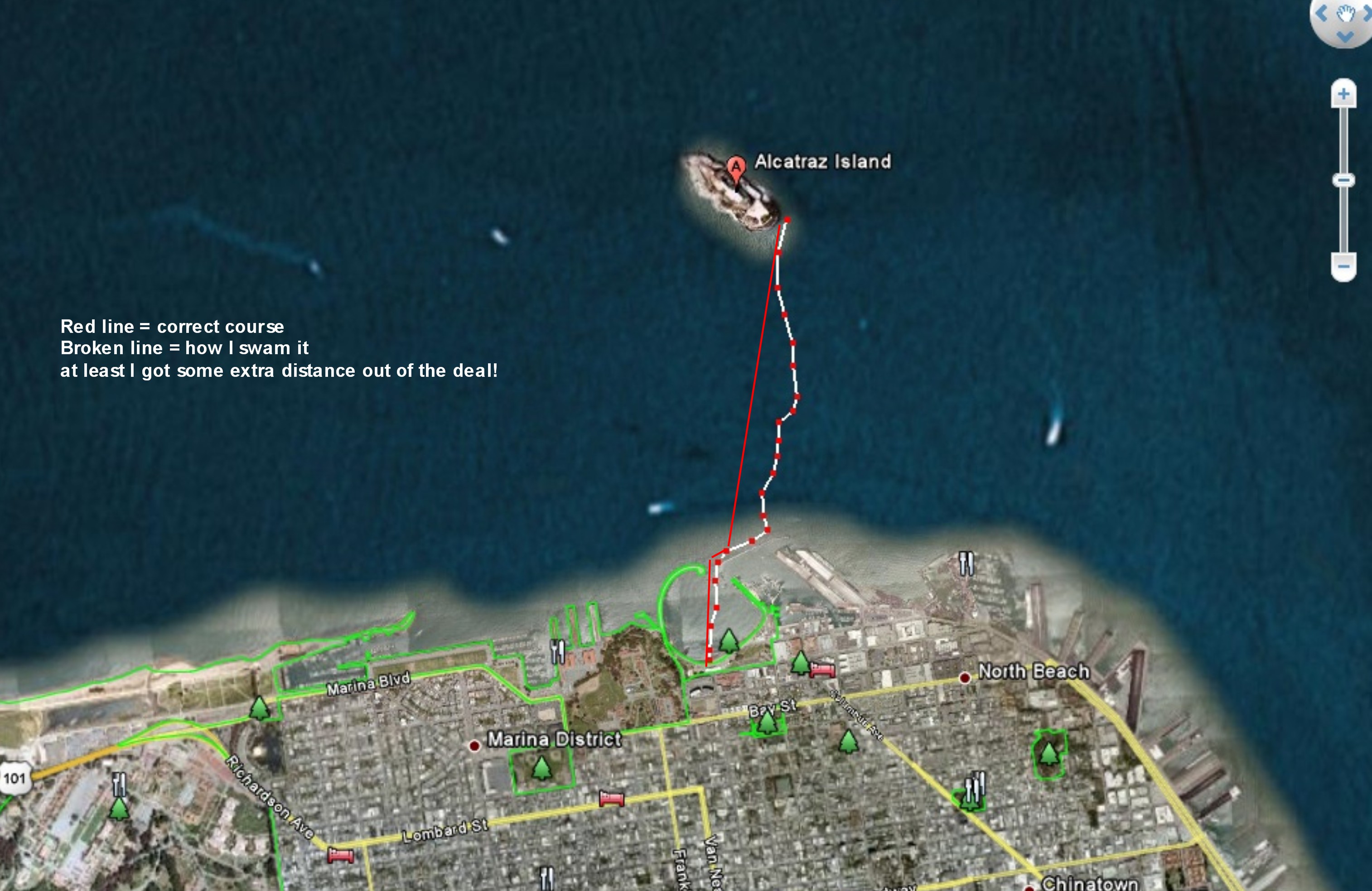 I think just swimming in the Bay – and from Alcatraz at that – is a victory in itself. That takes major balls! Great job, even if it wasn’t everything you hoped for!
