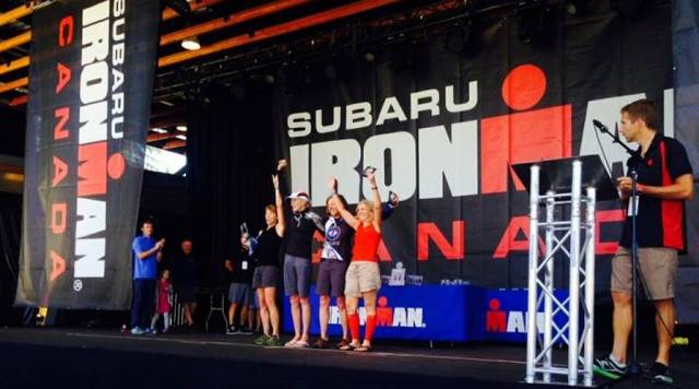 They started calling the winners of the women’s 60-64 and I had a moment, remembering that going in to the race I was pretty sure I could place but at the end I knew it wasn’t possible. Who gets on the podium with a 16:48 finish when there are 12 people in your AG? As I was starting to wallow in my personal shame and disappointment an amazing thing happened – they called my name. OH MY GOD -THAT’S ME!!! I was in 5th and at Ironman the podium goes 5 deep.